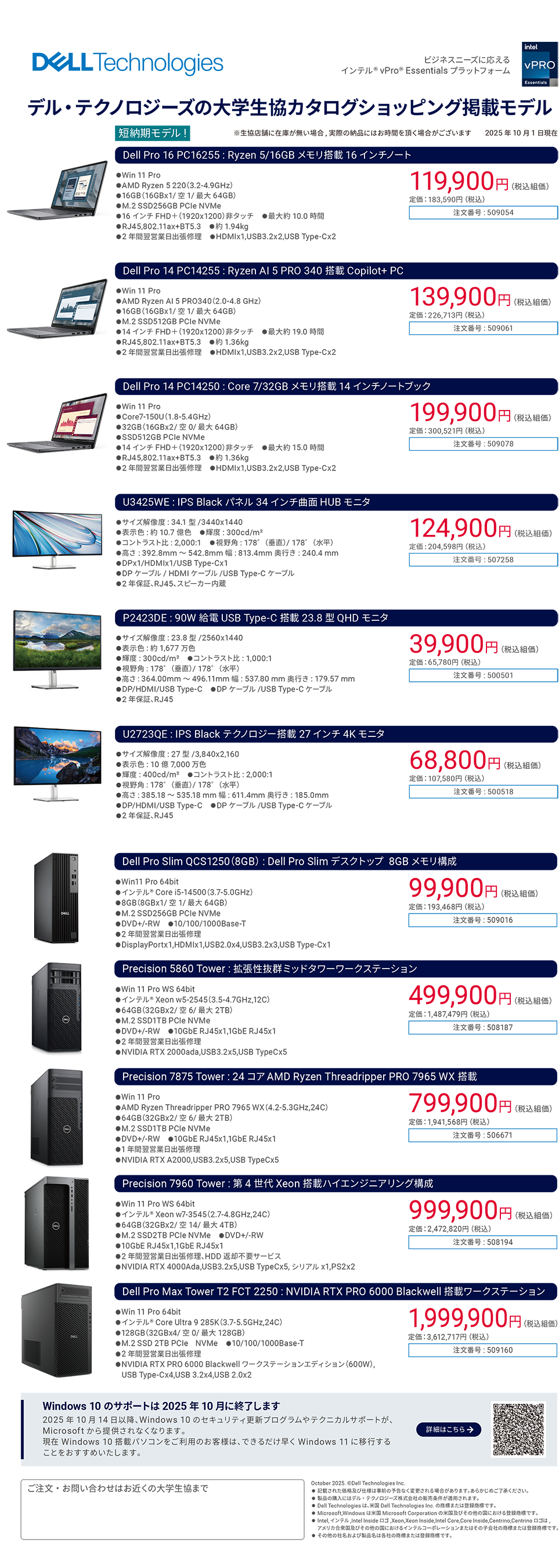 2025年10月 1日 デル・テクノロジーズ 大学生協カタログショッピング掲載モデル(2025年10月)