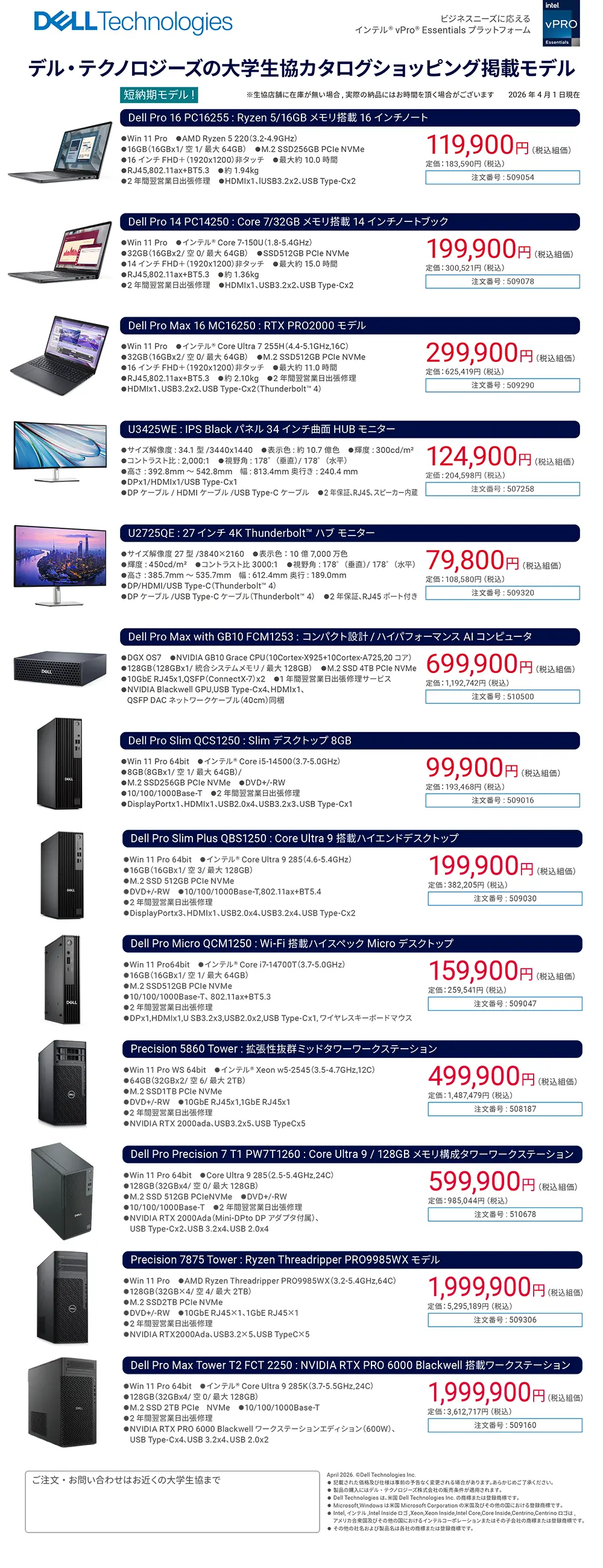 2026年3月31日 デル・テクノロジーズ 大学生協カタログショッピング掲載モデル(2026年4月)