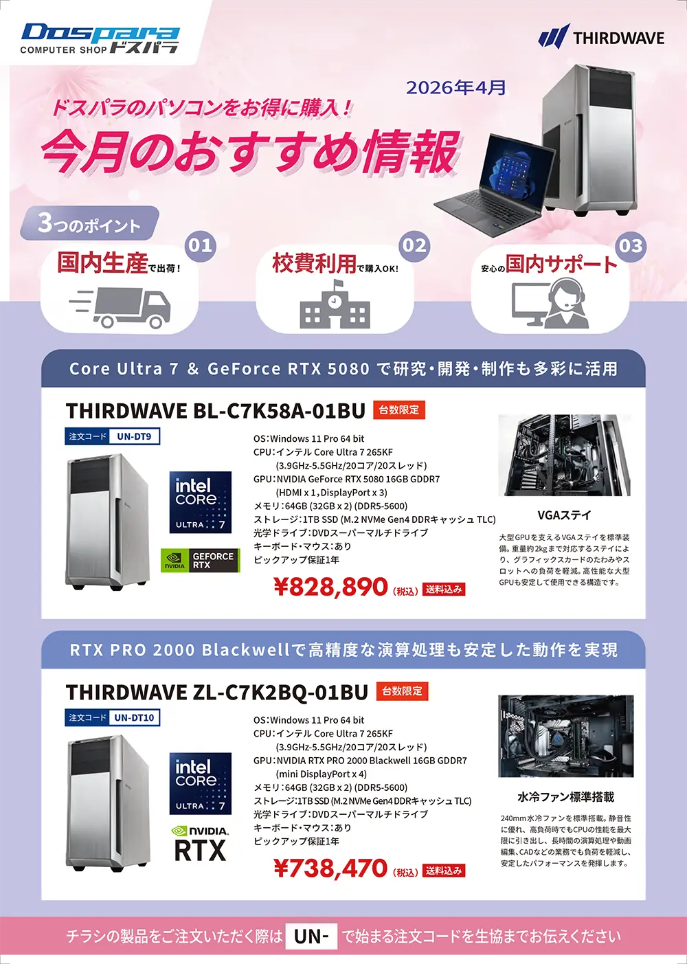2026年3月31日 ドスパラ 大学生協カタログショッピング掲載モデル(2026年4月)