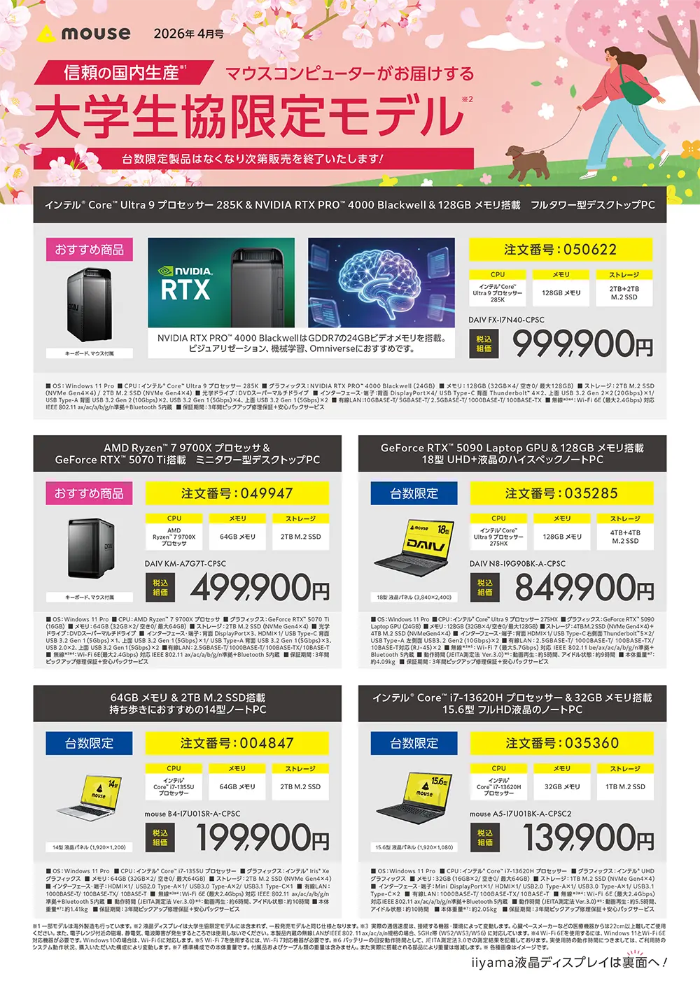 2026年3月31日 マウスコンピューター大学生協限定パソコン(2026年4月号)